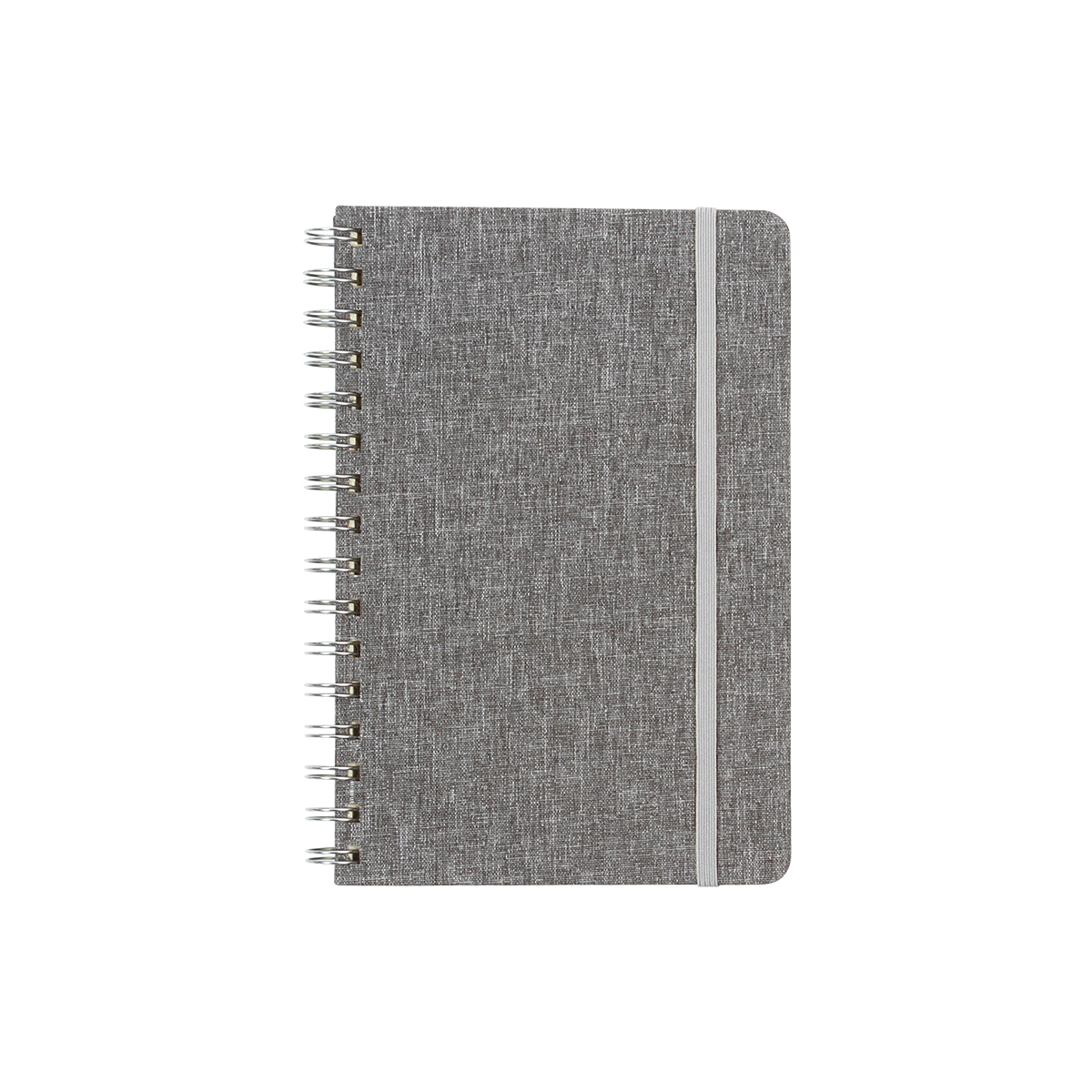 Libreta con diseño de espiral medida A5 fabricada con cubierta de PET 300D. Incluye 80 hojas rayadas de 70 gramos. Cuenta con banda elástica de colores llamativos.
